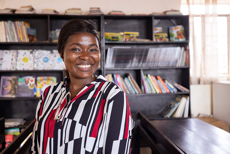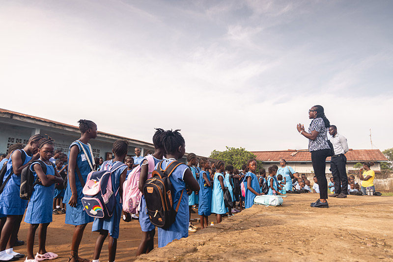 Mary Kamara, a field officer for In School, is a role model and champion for the girls. As a child, Mary went to school hungry and with holes in her shoes. She went on to earn a master’s degree and now dedicates her days to encouraging the girls the way others encouraged her.
